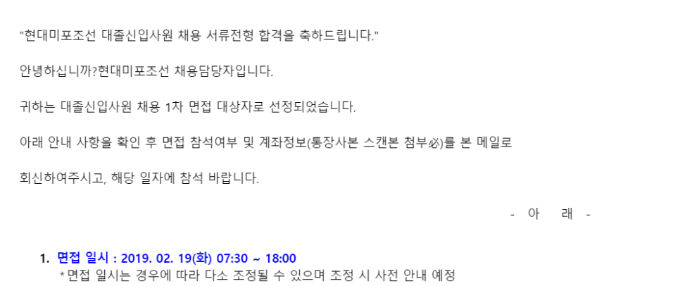 제가 합격 메일을 받은 게 2019년 2월 8일이니,